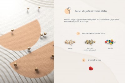Vsak izdelek je opremljen s kompletom žebljičkov, ki so prikazani v spodnji galeriji izdelkov. Izberite svojo najljubšo barvo!
