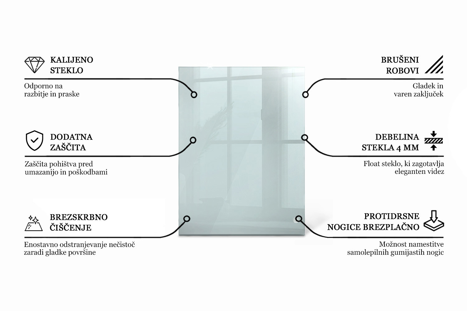 - Pravokotna steklena mizna plošča prozorna