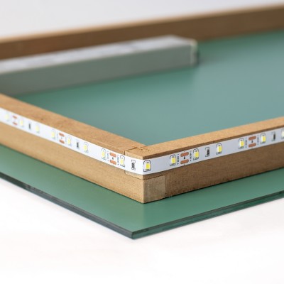 Naše ogledalo z LED osvetlitvijo je oblikovalski projekt, ki bo pomagal dopolniti dekor katerega koli prostora. Obesite ga lahko tako v kopalnici, hodniku kot tudi v spalnici. Ogledalo z LED osvetlitvijo ima trdno in vzdržljivo obliko. Narejen je iz popolne gladke steklene plošče, zaradi katere slika ni izkrivljena. Izdelujemo pravokotna ogledala v petih različnih velikostih, tako da jih je mogoče čimbolj prilagoditi projektu. Izbirate lahko med tremi barvami svetlobe: toplo, hladno in nevtralno belo. Sistem kaveljčkov za obešanje in distančnikov, ki so pritrjeni na stensko ogledalo, omogoča vodoravno ali navpično namestitev.